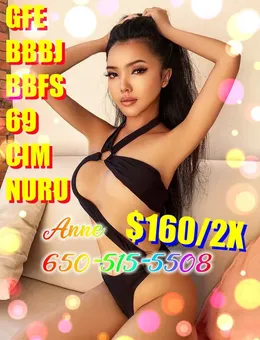 🐋TAKE A SHORT TRIP TO ASIA🐋 🐙NEW ARRIVAL TODAY🐙 🐠WANT TO SEE ALL OF DIFFERENT GUYS🐠 🌸Anne 23y/o 34D-25-34, 5'3", 103LBS🌸 🌼One of the 👍BEST SERVICES👍 in town!🌼 🦄Young Hottest ASIAN Girl🦄 🐱SPECIAL B to B MASSAGE🐱 ✿Sweet soft hands give you dreamed Heavenly feeling!✿ ✿Luxury Private ROOM!✿ ✿Amazing at sensual B TO B!✿ ✿Completely relieve all your stress✿ $160/6Omins(2X ok), $120/3Omins, $100/2Omins-1 girl $300/6Omins(2X ok), $240/3Omins, $200/2Omins-2 girls Call Anne Now @ 650-515-5508 🚫🚫🚫NO Bullshit 🚫🚫🚫NO Explicit Language