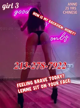 πŸ’Ÿβž–Hey hey hey!!! Can we get your attention? 3 naughty girls for you to choose from, are you ready for teasing, moaning and crazy sex? Maybe you've always fantasized about a perfect dream lover, then here is your paradise! Coz we are both bad girls... also your best mistresses! πŸ’Ÿβž–ABOUT US:😈😈😈 😈## BAD GIRL 1: Becky, 23 YRS, CHINESE. 😈## BAD GIRL 2: Cathy, 24 YRS, KOREAN. 😈## BAD GIRL 3: Anne, 25 YRS, CHINESE. πŸ’Ÿβž–WHAT WE CAN DO: πŸ’œ## Make me KNEEL and DEEP-THROAT my narrow mouth! GRAB my HAIR like grab your REIN! πŸ’œ## Put your face on wet kitty, quickly eat let me scream! πŸ’œ## To strong your prostate, extend fucking hour! πŸ’œ## Tongue frantically stirs the warm and lovely hole! πŸ’œ## Yank my head back, sink your cock straight into me from behind! πŸ’œ## FS/STRONG BBBJ/ORGASMIC 69/GFE/NURU/ASS SMACKING TEL: 213-278-7922