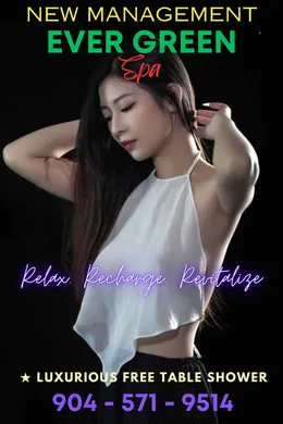 •──────•°•❀•°•─────• ❤️  『 Ever Green 』 Spa ❤️  ✅ Are you looking for a truly satisfying place? ✅ Here is where you want it! ♣️  Open 7 Days: 9:00AM - 9:00PM ♣️ ♣️  Sunays: 9:00AM - 6:00PM ♣️ ✔️ Click Call Now 904-571-9514 ✔️ Jacksonville/ Orange Park/ Rolling Hills NEW🆕Attractive Sweet❤️Asian Staff •──────•°•❀•°•─────• ✔️ Click to Map ✔️ ❤️  『 Ever Green 』 Spa ❤️  ✔️ Click Call Now 904-571-9514 ✔️ •──────•°•❀•°•─────• Avondale | Beaches | Downtown | Eastside | Greater Arlington | LaVilla | Mandarin | Northside | Ortega | Riverside | San Marco | Southbank | Southside | St. Nicholas | Westside | Downtown Jacksonville | Springfield | Arlington
