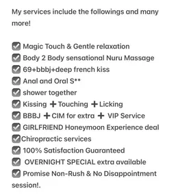 I’m available for hookup, body massage, Nuru massage, BJ, bareback & many more! I’m an honest lady &