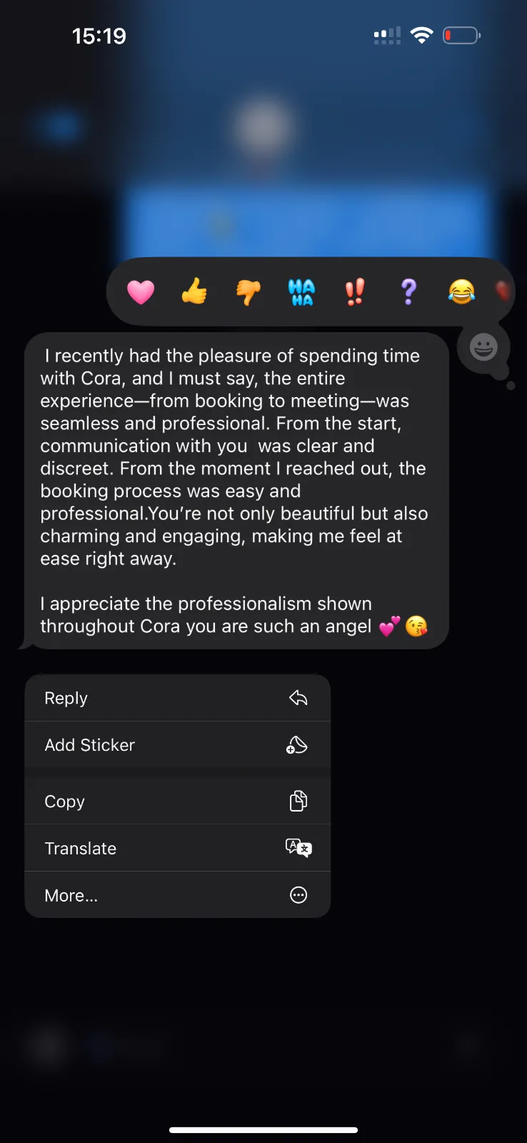 I’m Cora. I pride myself on being sweet, polite, and dedicated to creating an unforgettable experience tailored to your desires 👅💦. I’m here to help fulfill your fantasies, offering a range of services that cater to your preferences.🍑🍑👅💦🌚 I value respectful, mature gentlemen and always prioritize discretion and authenticity. I’m genuinely available and ready to provide an enjoyable experience. Ser